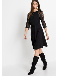 Bonprix Úpletové šaty s vázačkou černá Žena