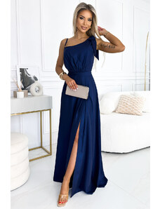 NUMOCO Tmavě modré maxi šaty s mašlí Tmavě modrá