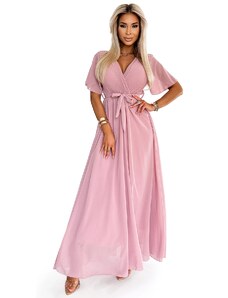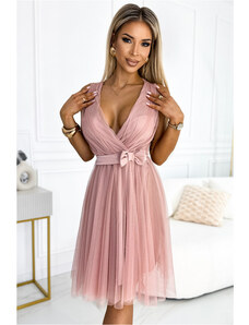 Numoco 311-19 LILA Klasické plisované šaty s krátkými rukávy a páskem - PUDRAL ROSE