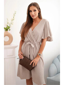 NUMOCO Elegantní béžové šaty NICOLA s páskem Béžová
