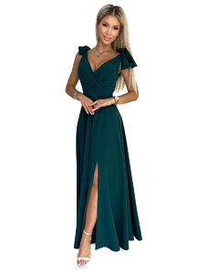 Numoco midi šaty typu Carmen s mašlí ve výstřihu lahvově zelené Tmavě zelená