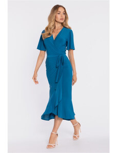 Moe M912 Zavinovací midi šaty s volánem a řasením - oceánsky modré