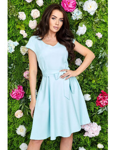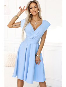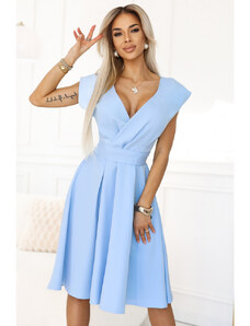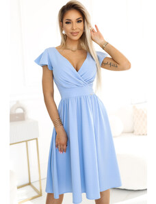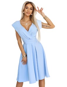 NUMOCO Světle modré šaty s výstřihem a krátkým rukávem MATYLDA Světle modrá