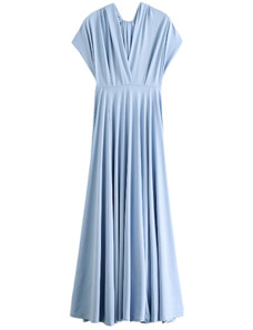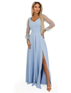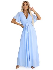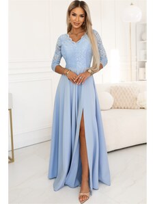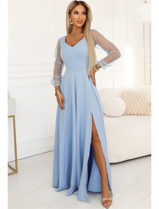 NUMOCO Světle modré dámské dlouhé šaty s rozparkem a výstřihem JENNIFER Světle modrá