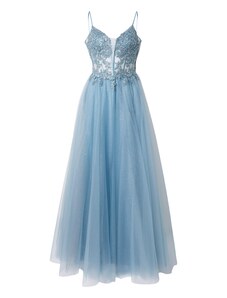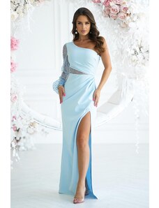 NUMOCO Světle modré dlouhé šaty s výstřihem a třpytkami CRYSTAL Světle modrá