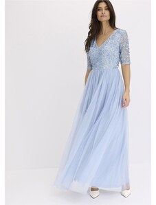 Bonprix Maxi šaty z jemného tylu, s výšivkou s flitry modrá Žena