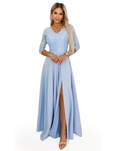 Numoco AMBER dlouhé krajkové šaty s výstřihem světle modré Světle modrá