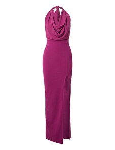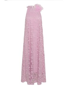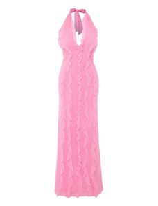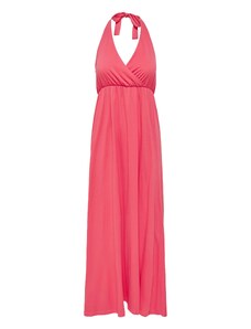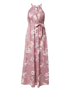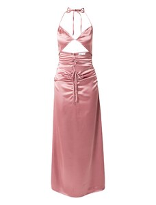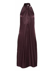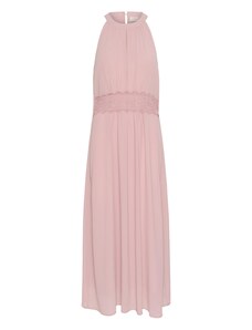 K-Fashion Dámské viskózové maxi šaty vázané na krku s ozdobnou sponou tmavě pudrově růžová