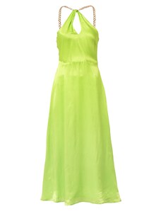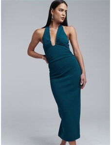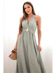 K-Fashion Dámské viskózové maxi šaty vázané na krku s ozdobnou sponou khaki