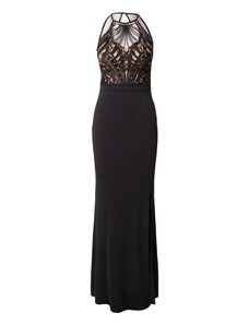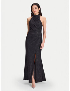 Numoco basic 636-3 VERONICA luxusní dlouhé šaty s brokátovým akcentem a elegantním střihem - černé