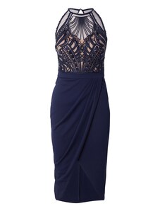 Numoco basic 636-2 VERONICA luxusní dlouhé šaty s brokátovým akcentem a elegantním střihem - námořnická modř