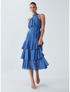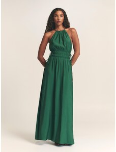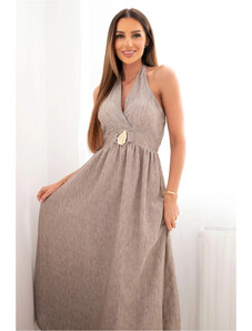 K-Fashion Dámské maxi viskózové šaty vázané na krku s ozdobnou přezkou fango
