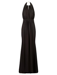K-Fashion Dámské viskózové maxi šaty vázané na krku s ozdobnou sponou černá