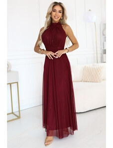 Numoco basic 636-1 VERONICA luxusní dlouhé šaty s brokátovým akcentem a elegantní linií - vínová barva
