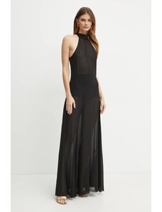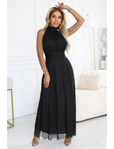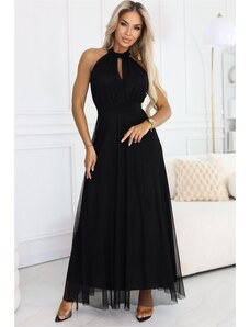 Numoco elegantní večerní maxi šaty halter s tylem a vázáním v pase černé Černá