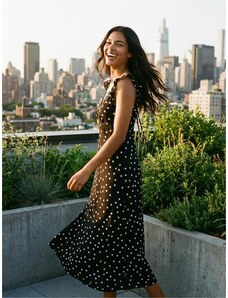 FIGL Černé dámské vzorované maxi šaty s odhalenými rameny Černá