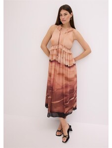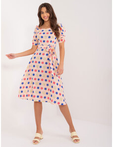 BASIC Broskvové květinové midi šaty -peach Květinový vzor