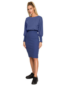 Pouzdrové šaty s páskem S336 modré - Stylove