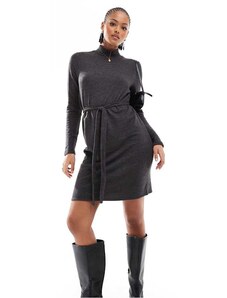 Vero Moda Tall high neck knitted mini dress with tie waist in black