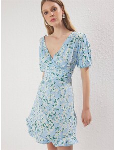 Blancheporte Krátké rozšířené šaty s výstřihem do V a potiskem rostlin tyrkysová
