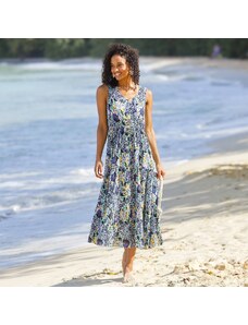 Blancheporte Plážové šaty na knoflíky, s potiskem modrá/režná
