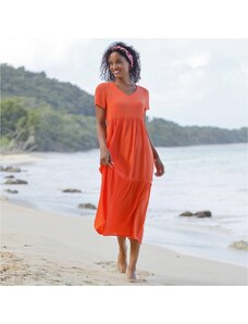 Blancheporte Kreponové jednobarevné midi šaty s výstřihem do V oranžová