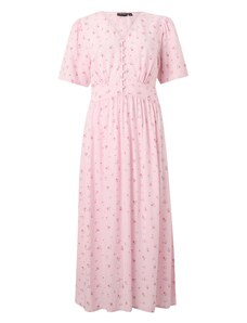 Blancheporte Krátké kreponové šaty s macramé a potiskem květin režná/růžová