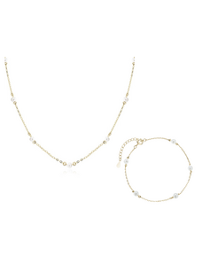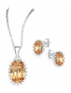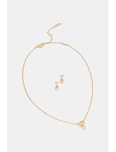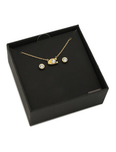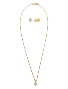 Pozlacená stříbrná sada náušnic a náhrdelníku se zirkonovou kapičkou - Meucci SYN008/SYE061