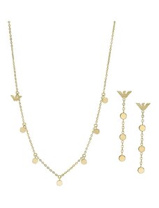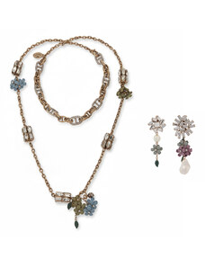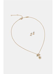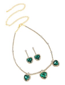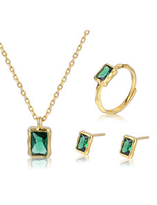 Pozlacená stříbrná sada náušnic a náhrdelníku se zelenými zirkony - Meucci SYE139/SYR053