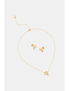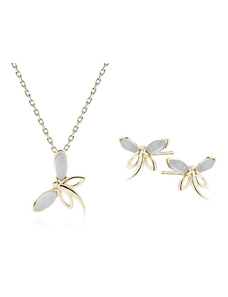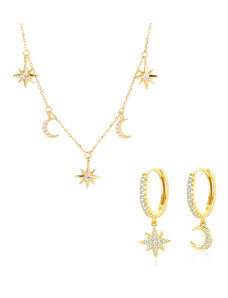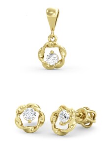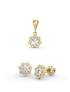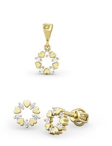 SOLUNA Romantická zlatá dívčí souprava přívěsku a náušnic se zirkony VANESA žluté zlato