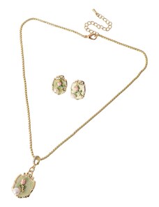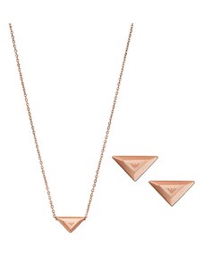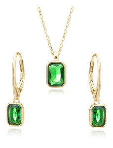 Pozlacená stříbrná sada náušnic a náhrdelníku se zeleným zirkonem - Meucci SLE456/SLN078