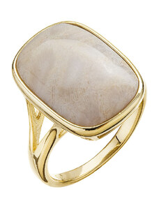 Pozlacený prsten obdélník s fosilním korálem 15026.3