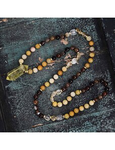 Flor de Cristal Náhrdelník z pravých kamenů: Žlutý fluorit, žlutý krystal, avanaturín, achát, měď, 85 cm