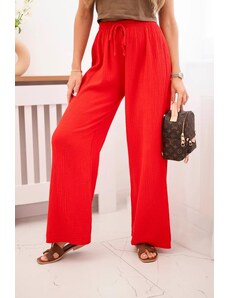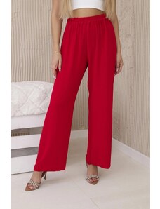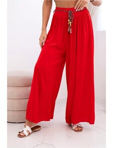 MladaModa Široké viskózové kalhoty s vázáním v pase model 81733 červené