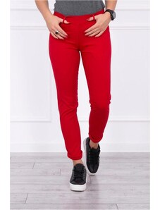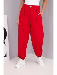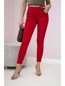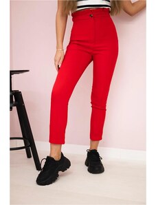 MladaModa Bavlněné kalhoty s vysokým pasem a ozdobným knoflíkem model IT116 červené