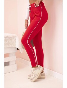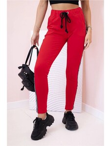 MladaModa Teplákové kalhoty s pruhem na boku a vázáním v pase model 67221 červené