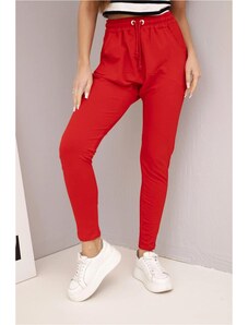 MladaModa Teplákové kalhoty s elastickým pasem a šňůrkou model 68429 červené