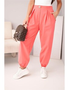 MladaModa Bavlněné oversize kalhoty a gumou v pase model 21207 korálové