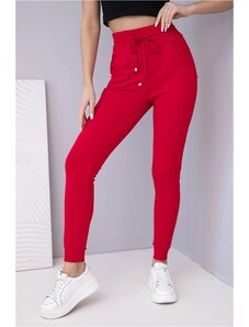 MladaModa Bavlněné teplákové kalhoty s vysokým pasem a šněrováním model 68534 červené
