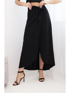 K-Fashion Dámská bavlněná zavinovací maxi sukně se zavazováním černá