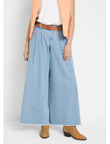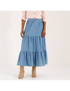 Blancheporte Dlouhá volánová sukně z lehkého denimu sepraná modrá