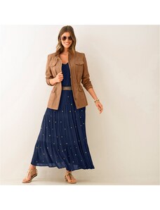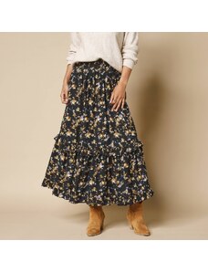 Blancheporte Dlouhá volánová sukně se zlatavým potiskem nám.modrá/zlatá