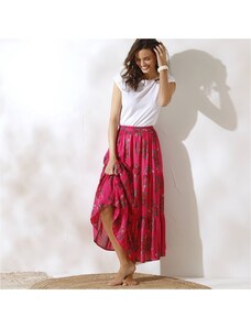 Blancheporte Dlouhá volánová sukně s potiskem květů korálová