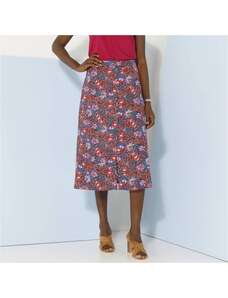 Blancheporte Splývavá midi sukně na knoflíky s potiskem květů, eco-friendly viskóza modrá/purpurová