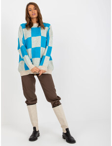 BASIC Modro-béžový kostkovaný svetr -light blue Kostkovaný vzor