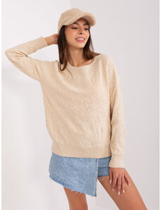 ITALY MODA Světle béžový svetr se vzorem -light beige Béžová