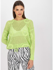 RUE PARIS Světle zelený dámský svetr s kapucí -light green Limetková