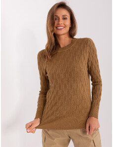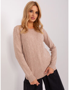 ITALY MODA Tmavě béžový svetr s copánkovým vzorem -dark beige Béžová