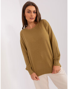 ITALY MODA Olivový jednobarevný svetr -olive Khaki