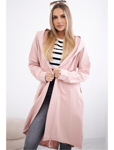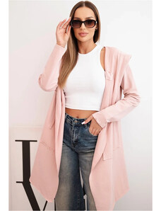 Kesi Pudrový ležérní dámský asymetrický kardigan s kapucí a kapsami Pudrová